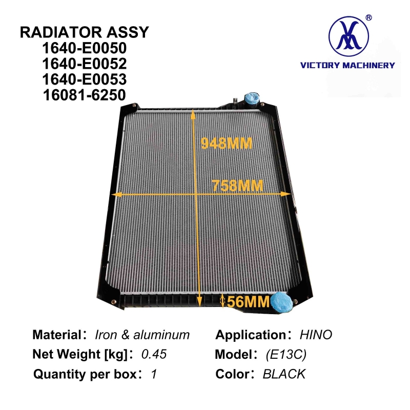 HINO 700 E13C용 내구성 있는 알루미늄 라디에이터 1640-E0050 1640-E0052 1640-E0053 16081-6250 – 대형 트럭용 나무 상자 포장